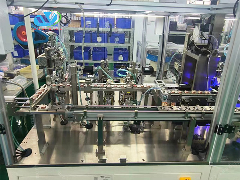 PRECISION AUTOMATIC RELAY ASSEMBLING PRODUCTION LINE   Precision Automatic Relay Assembling Production Line a specific relay assembly line and mainly composed of 15 machines and all are connected in series. The carriers are transported by cack-and for the flow lines. The whole line is controlled by PLC, and each individual machine owns a separate router for an independent LAN, which can ensure the stability of the whole system. This production line realizes the full automatic production of relay, reduces the labour cost, and improves the production efficiency.
